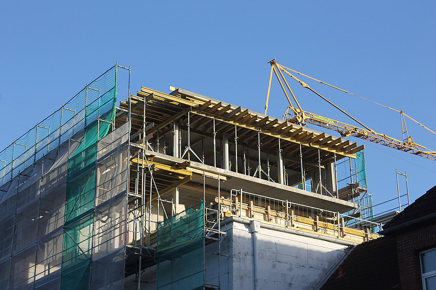So sieht es heute am Bunker aus. Einige Wände stehen bereits auf dem Dach.