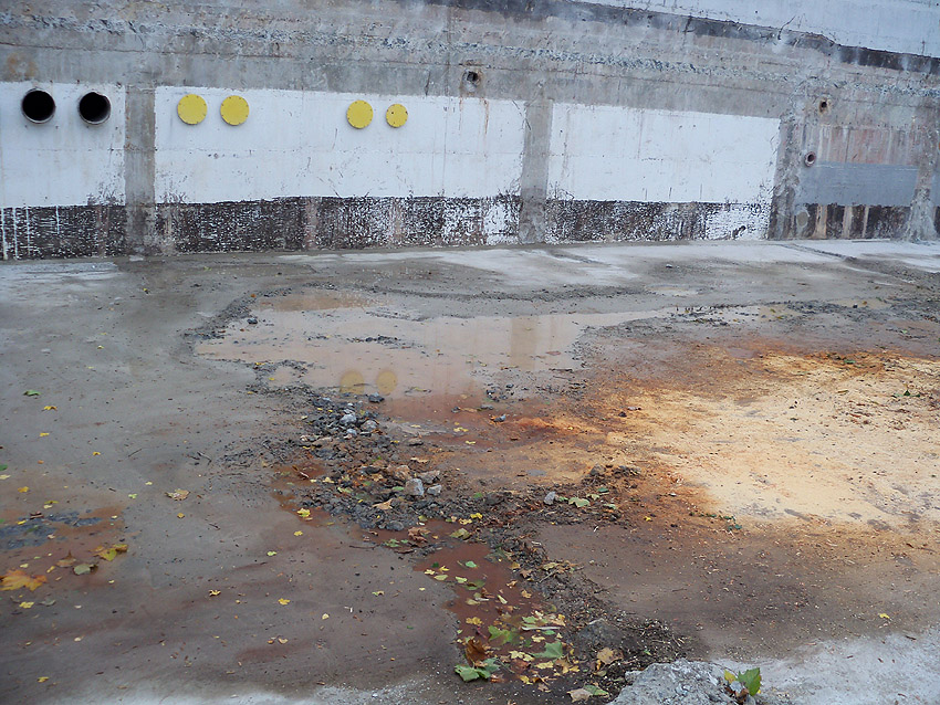 Dies dürfte der ehemalige Brunnenraum sein. Auf dem Boden zu sehen höchstwahrscheinlich der Hydrant-Anschluss für den darunter liegenden Tiefbrunnen.