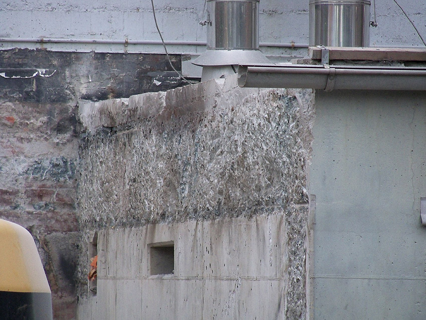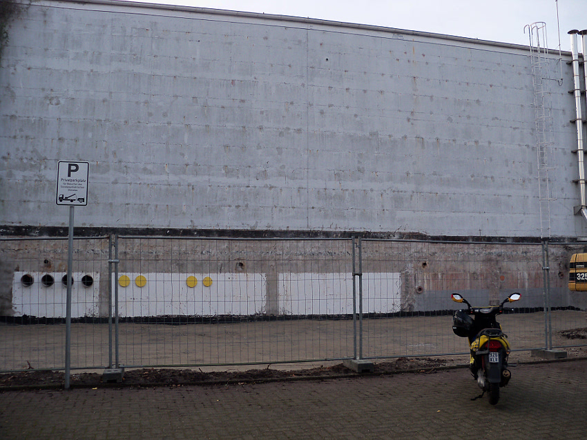 Am ehemaligen OP-Hochbunker Virchowstraße rücken die Abrissarbeiten des Vorbaues aus Nachkriegszeiten dem Ende entgegen. Der Nordbereich des Vorbaues bleibt erhalten. Wir berichten weiter. Wir haben nachgesehen: Der Originalvorbau schloß genau an der Nordwand des Nachkriegsvorbaues ab, besaß die gleiche Höhe wie dieser und fand seine Südbegrenzung genau dort, wo der jetzt erhalten bleibende Nachkriegsvorbaurest seine Südbegrenzung zeigt.