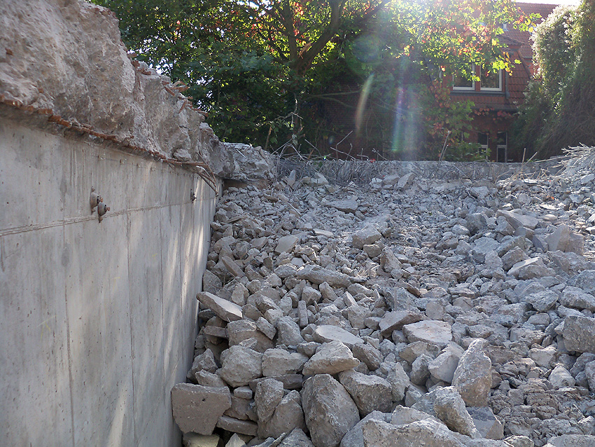 Der Schutt ist entfernt. Die Abrissarbeiten sind abgeschlossen. Zugänge in den Bunker und den Vorbau wurden vermauert. Wenn es hier weiter geht, sind wir wieder vor Ort.