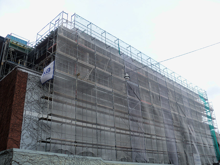 Nach Wochen wieder Aktivität von außen zu erkennen: Am Hochbunker Virchowstraße schreiten die Bauarbeiten für den Überbau langsam auch äußerlich sichtbar wieder voran. Wann der Anbau mit Treppenhaus und Aufzug jedoch installiert / angesetzt wird, ist uns noch unbekannt.