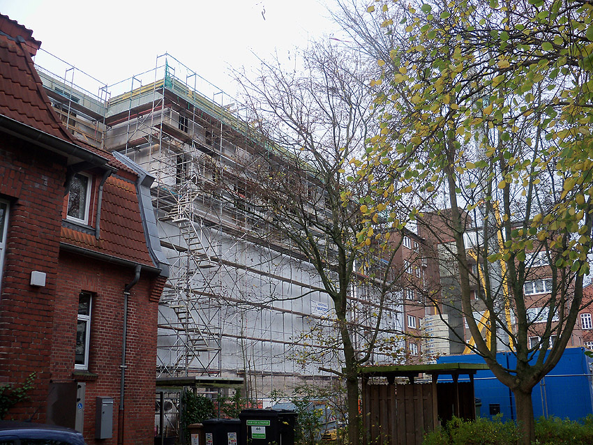 Am Bunker Virchowstraße ist nun zumindest an der östlichen Rückseite die Struktur der aufgebauten Wohnungen gut zu erkennen. Die Arbeiten gehen langsam endlich ihrer Vollendung entgegen.