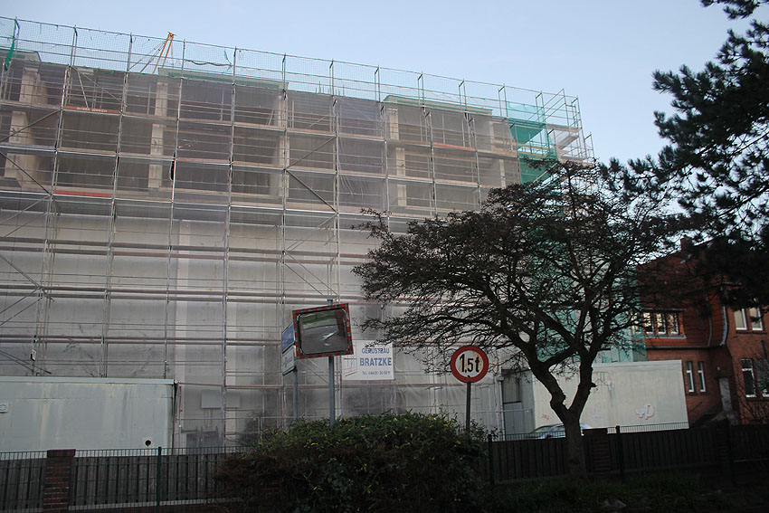 Der Bunker ist vorne wie hinten noch immer eingerüstet... Man darf gespannt sein, wann endlich die Arbeiten vollendet sind.