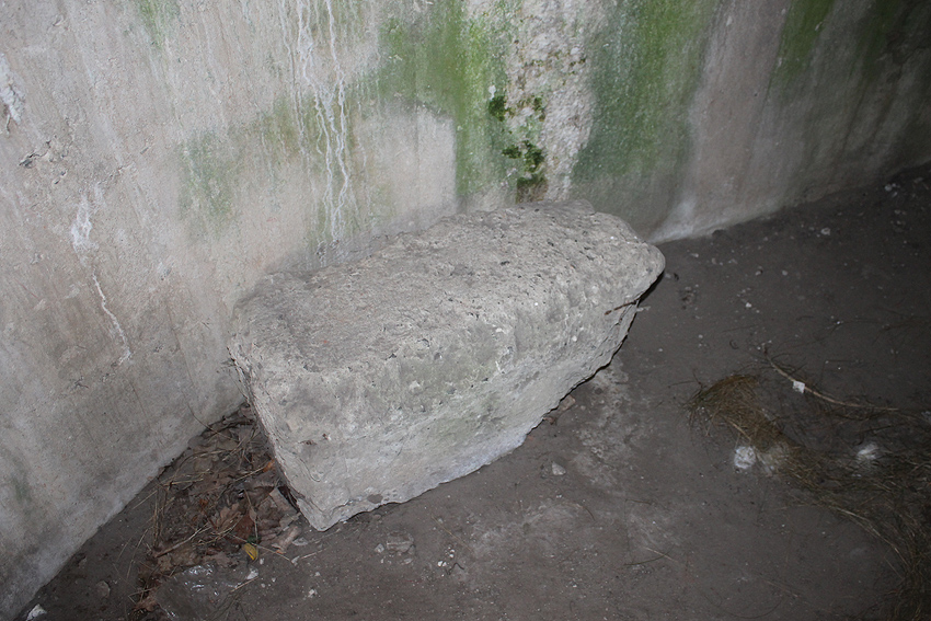 Dies wird entweder der Rest des Notausstiegsblockes sein, wenn er denn aus Beton war und keine Stahlklappe eingebaut war, oder aber es wird ein Rest der vermuteten Mittelsäule sein.
