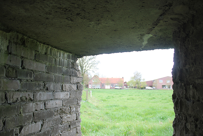 - An den Rundbunker ist nahe nordwestlich Mitte 2015 bis Anfang 2016 ein Einfamilienhaus gebaut worden. Der Bunker ist bis dato weiterhin unversehrt im obigen Zustand erhalten geblieben.