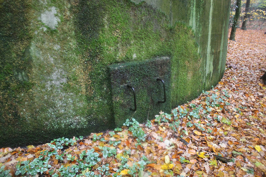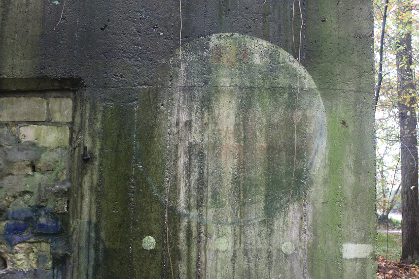 Am hier nicht ersichtlichen rückwärtigen Bereich des Westsplitterschutzvorbaues befindet sich ein heller Kreis, war hier ein ROTES KREUZ (wie am westlichen Rundbunker - Bilder folgend) angemalt?