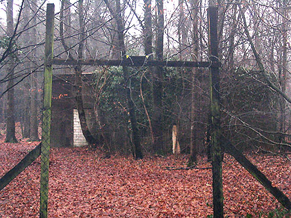 Der Brandwachenstand im Splitterschutzvorbau (drei Sichtscharten) mit Blickrichtung Nordwest zum ehemaligen Waldkrankenhausgebäudebereich (Baracken)...