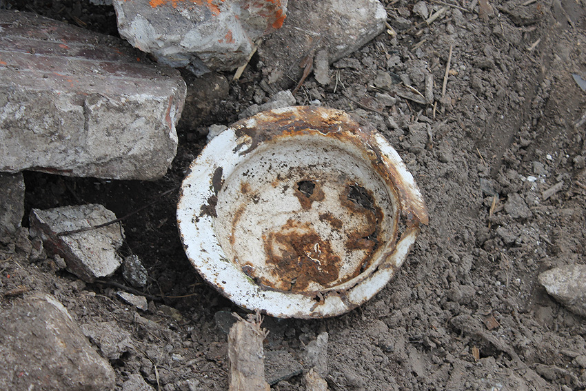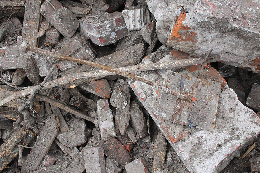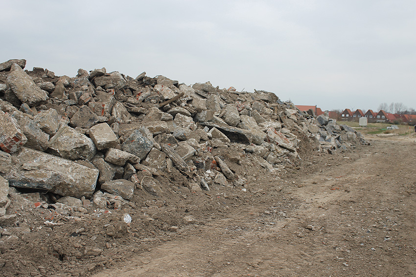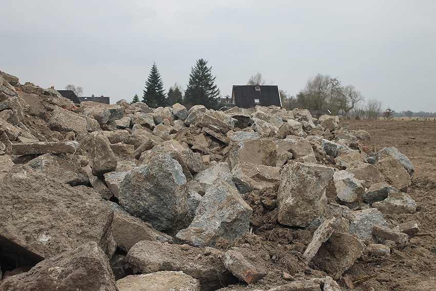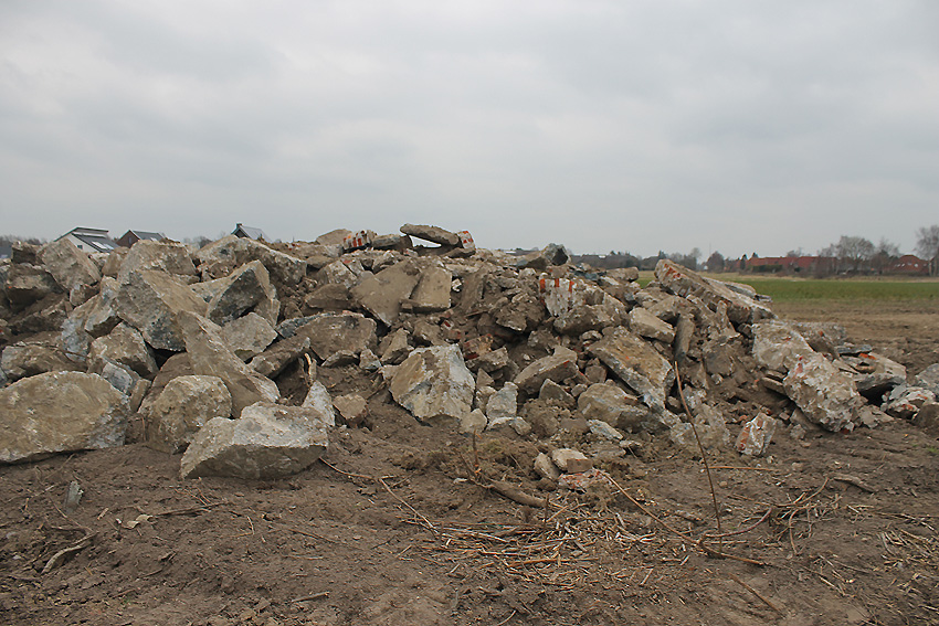 Aufgeschüttete Trümmer von betonierter Mannschaftsunterkunft 1