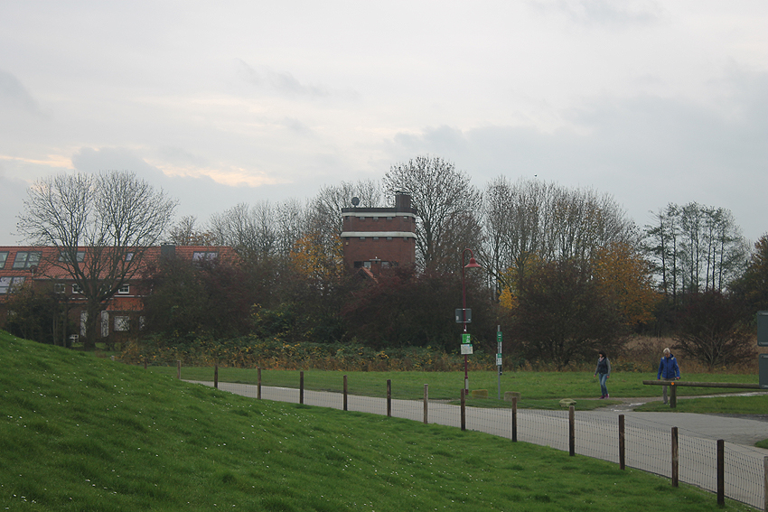 Trafoturm (in Verbindung mit der Batterie) nahe der Nordwestecke des Vareler Hafens: