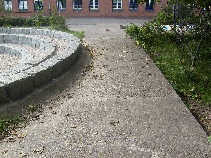 Südlich dieser Anlage gibt es noch einen zweiten Deckungsgraben. Dieser besitzt jedoch nur einen Einfach-Knick. Aufgrund der schlechten Einsehbarkeit der Anlage in der Südostecke des Schulhofes und aufgrund der Tatsache, dass das Vorhandensein von Anlage 2 zum Fototermin noch nicht bekannt war, wurden auf dieser Tour leider keine Fotos von Graben 2 gemacht. Durchaus könnte es auch sein, dass Bauwerk 1 und 2 ursprünglich verbunden waren, da die Strukturen von Norden nach Süden teilweise in einer Fluchtlinie stehen.