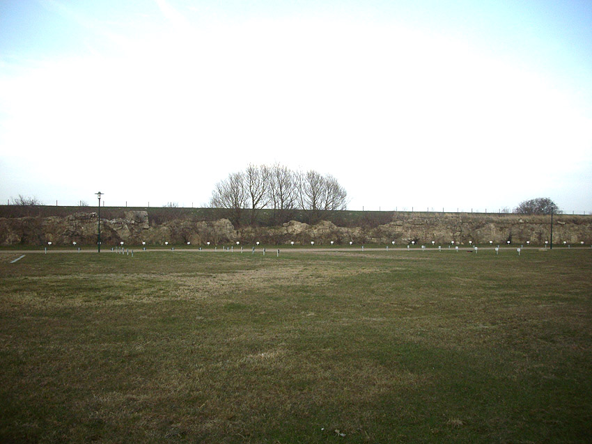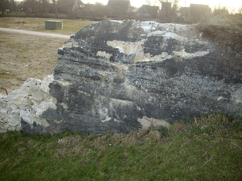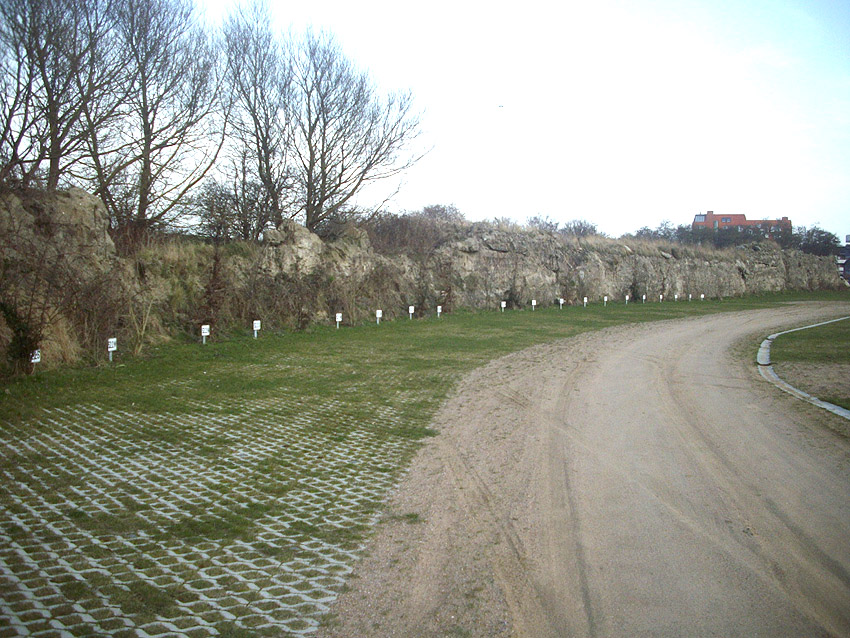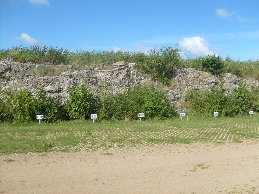 Nun sind die gesamten Reste der Nordflanke der ehemaligen Verbunkerungen klar erkennbar. Diese bleiben weiterhin erhalten und stellen nun eine Art künstliche Klippe dar. Die gewaltige Betonfront erstreckt sich von Westen nach Osten über fast 250 Meter hinweg...