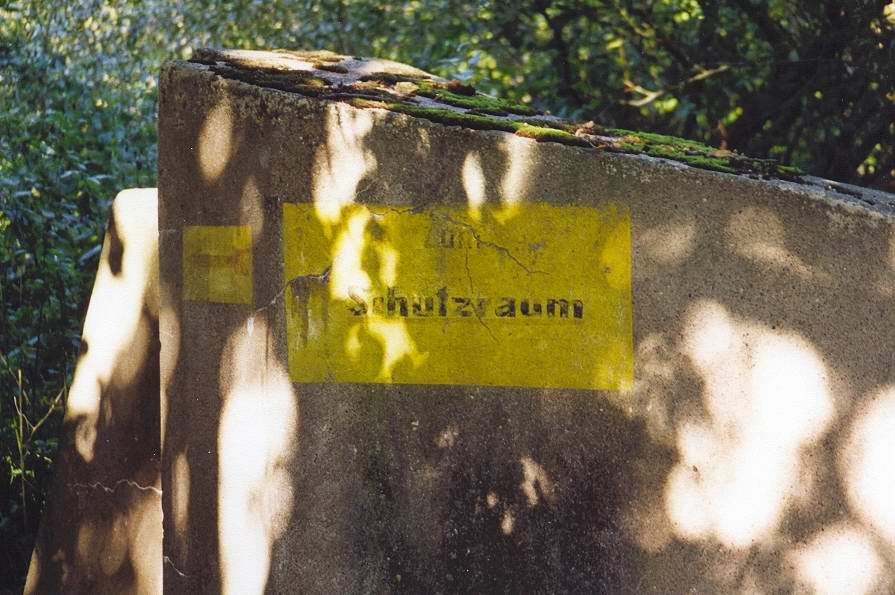 Bei dem rechten Eingangsbauwerk zum Fortgelände handelt es sich um das Objekt des obigen Fotos von 2003. Zu erkennen ist, dass ein gleiches Schutzraumhinweisfeld auch auf dem linken Objekt des Eingangsbauwerkes zumindest zum Zeitpunkt der Aufnahme 1978 noch zu sehen war...
