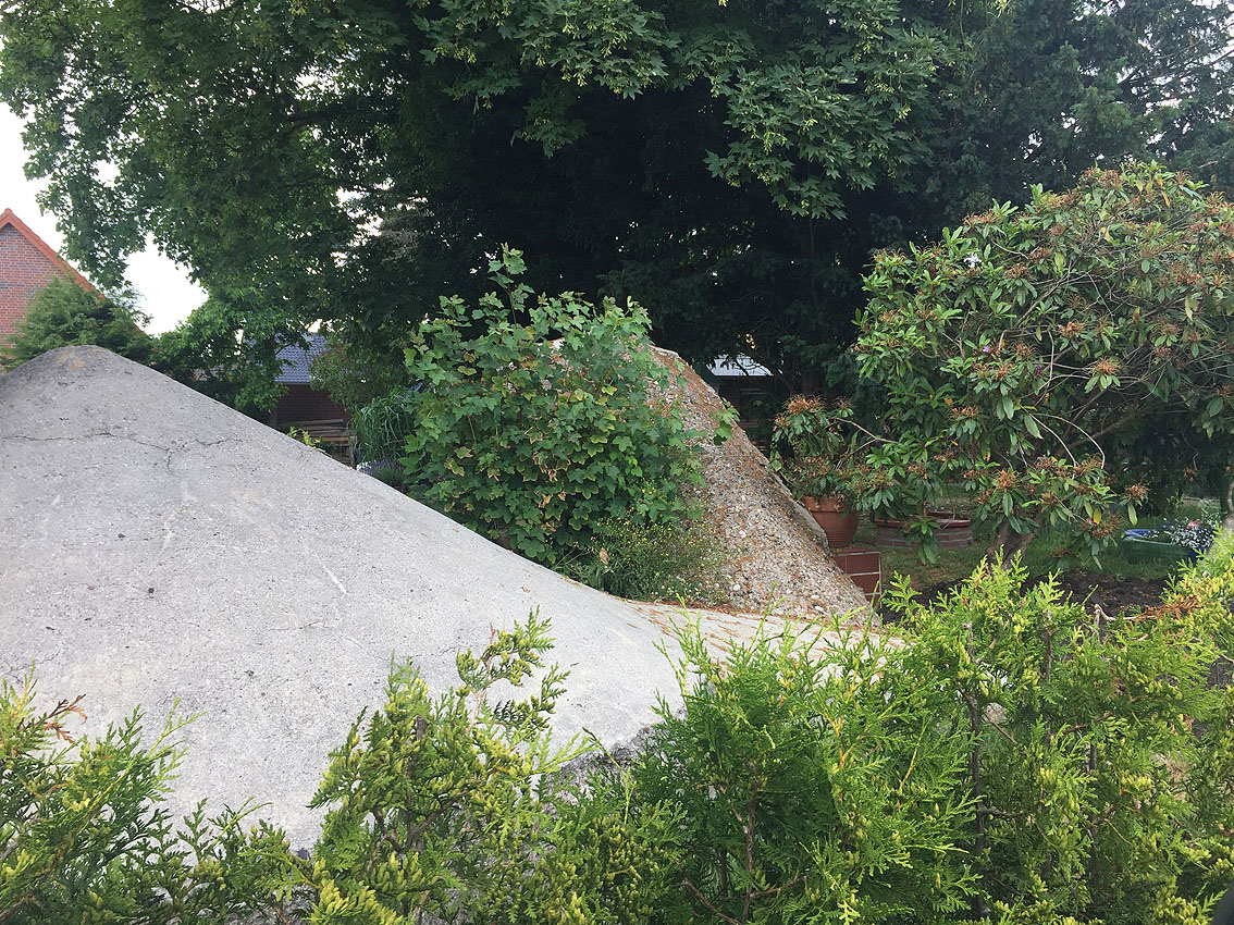 Mittlerweile ist der kleine Rundschutzbau komplett freigelegt und gut einsehbar. Augenscheinlich ist er gut erhalten. Die Dachkuppel wurde wohl saniert. Abgerissen wird er höchstwahrscheinlich glücklicherweise in nächster Zeit nicht. Er scheint wohl (wieder?) in Nutzung durch die Anwohner zu stehen.