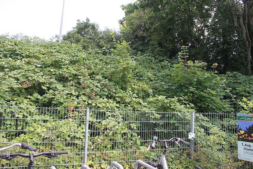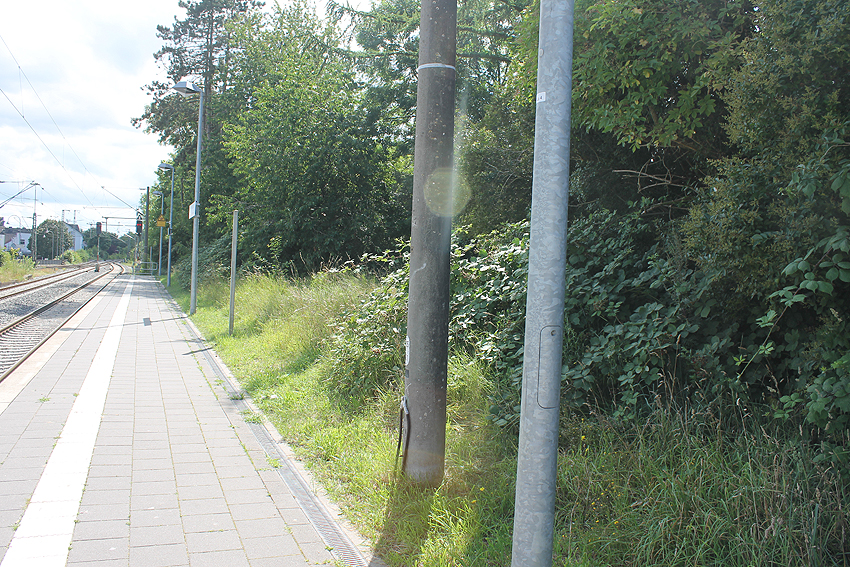 Heute ist das Gelände nicht einsehbar. Es ist keinerlei Struktur erkennbar, lediglich die massive längliche Erdaufschüttung, unter der sich die Röhre befindet.