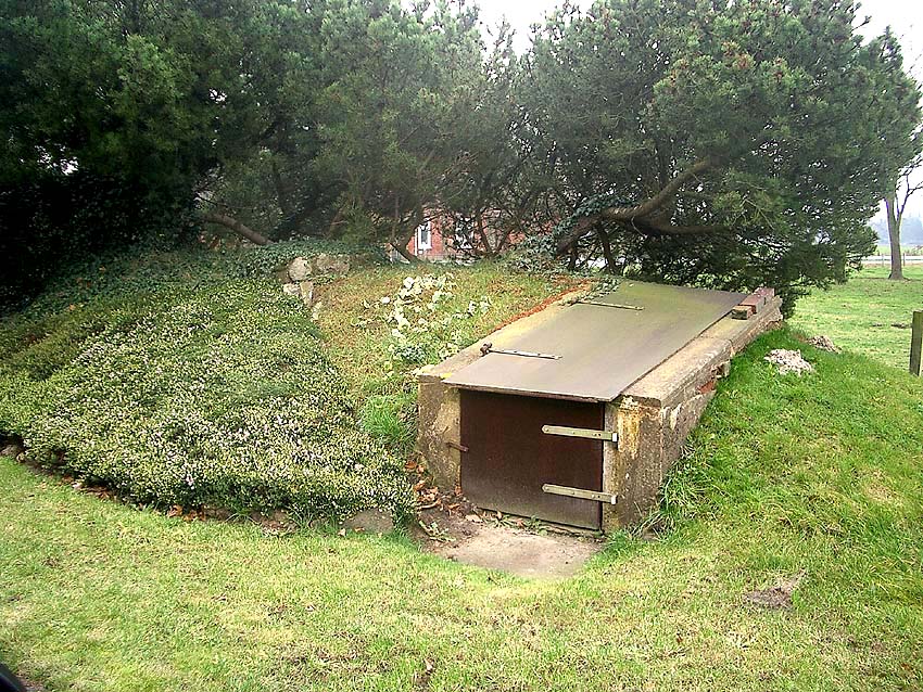 Dieser Erdbunker wurde etwa 2010 abgerissen. Hier befindet sich heute eine Parkplatzfläche und Zuwegung zur anliegenden Weide: