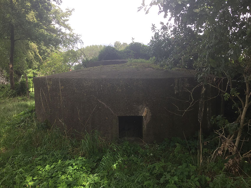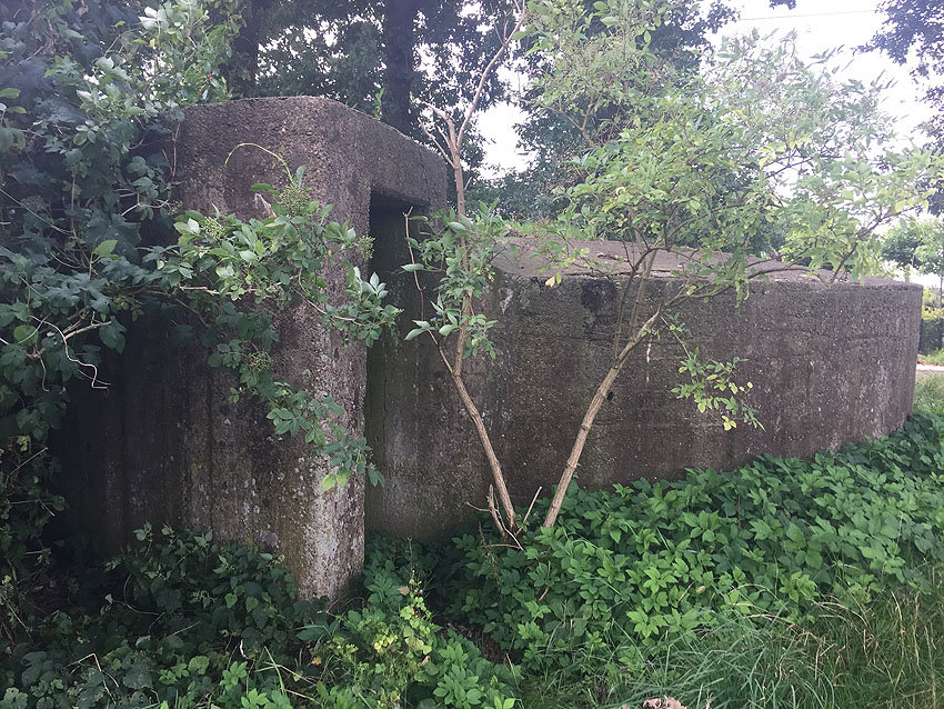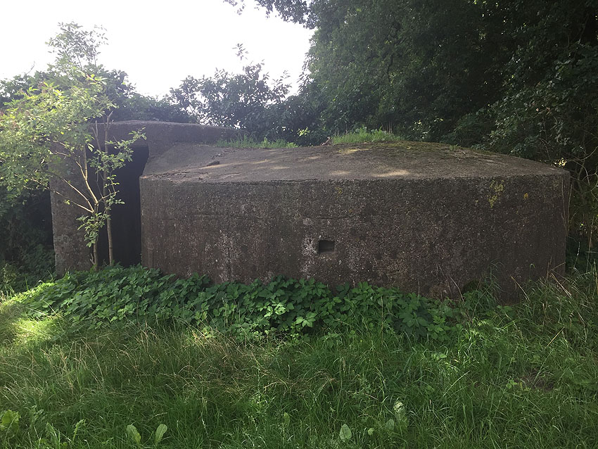 Diese kleinen Rundschutzbauten wurden im Bereich Stuhr gehäuft errichtet. Sie werden so gut wie baugleich zueinander sein und weisen auch starke Ähnlichkeiten zu einem Rundbunkertyp auf, der im nahen Delmenhorst realisiert wurde. Dieser kleine Rundschutzbau hier ist fast zur Hälfte in die Erde eingelassen und identisch mit jenem am Friedhof Stuhrer Landstraße 136 in Stuhr.