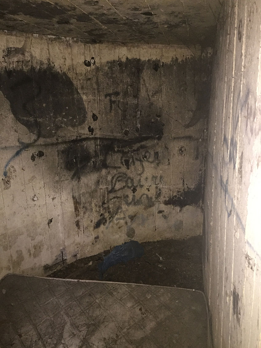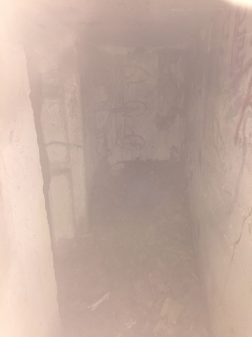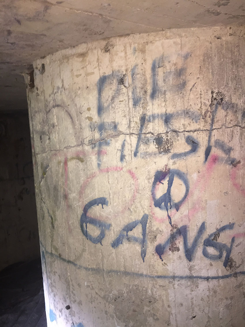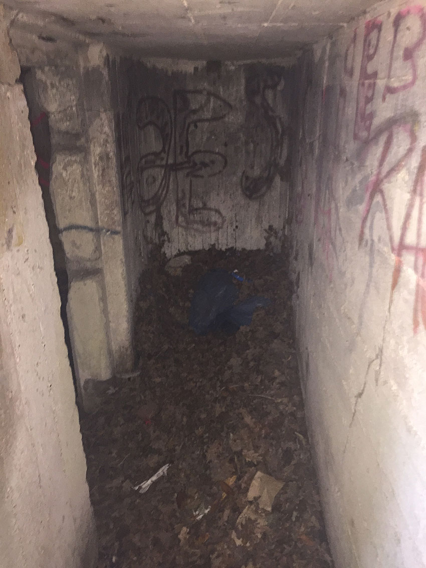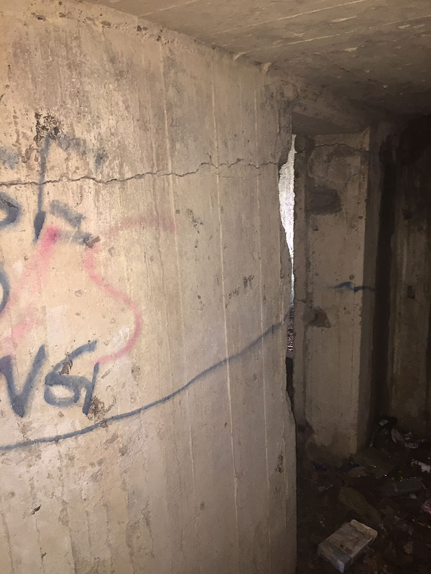 Hier befand sich ursprünglich der Notausstiegsblock. Aufgrund der Demilitarisierungsmaßnahmen dürfte er bald nach dem Krieg entfernt worden sein...