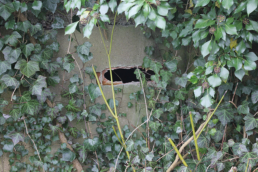 Hier zu erkennen der vermauerte Notausstieg. Alle Bunker dieses Typs besitzen diesen Ausstieg an der Rückseite.