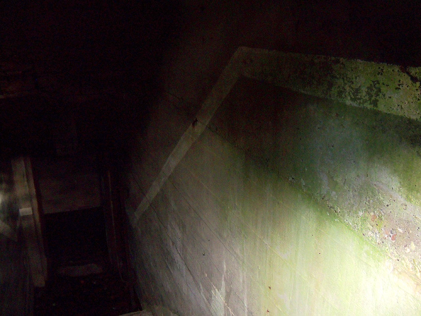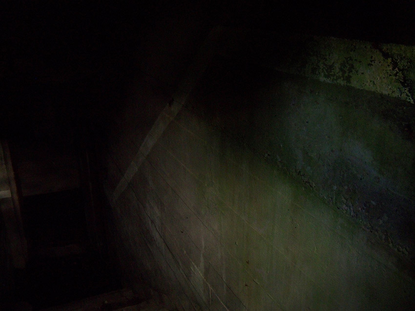 Auf Blitzlicht haben wir hier aus Rücksichtnahme bezüglich der geflügelten Bewohner verzichtet. Die erkennbaren hellen Phosporstreifen wurden erst kurz vor Kriegsende angemalt: