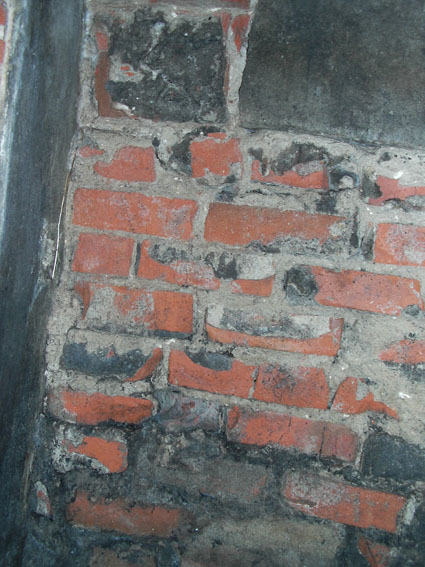 Der Eingang / Notausstieg von innen. Er wurde nachträglich zugemauert.