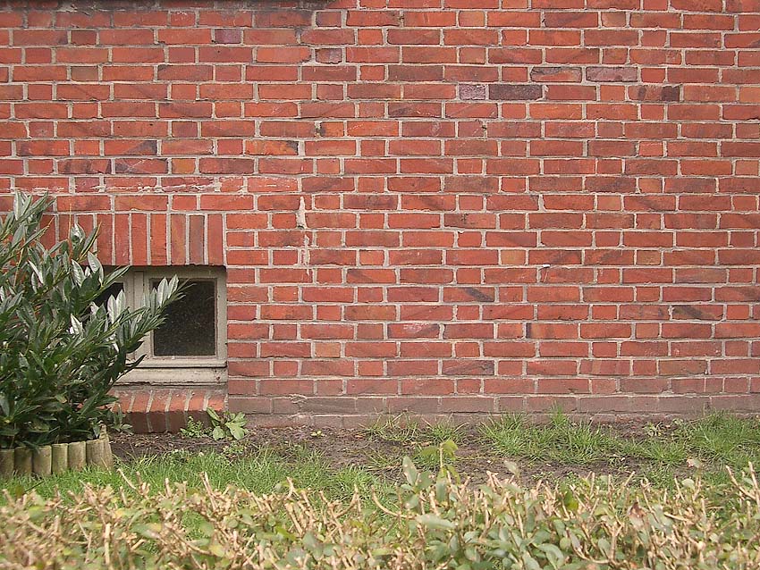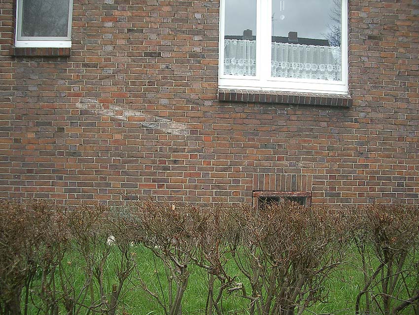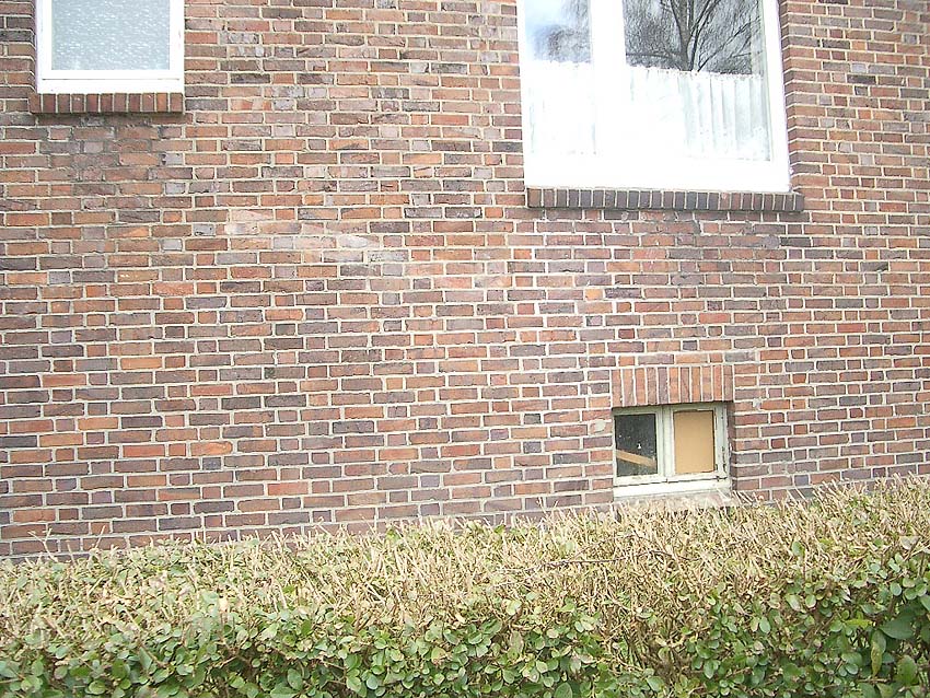 Auch vor den nachfolgend abgebildeten ehemaligen LS-Kellerfenstern waren wie vor diversen anderen Kellerfenstern im Stadtgebiet Betonblöcke gelagert worden. Sie sollten Schutz vor Detonationsdruck bieten. Auch auf den nachfolgenden Bildern sind Reste der Putzfugendichtung teilweise noch gut zu erkennen...